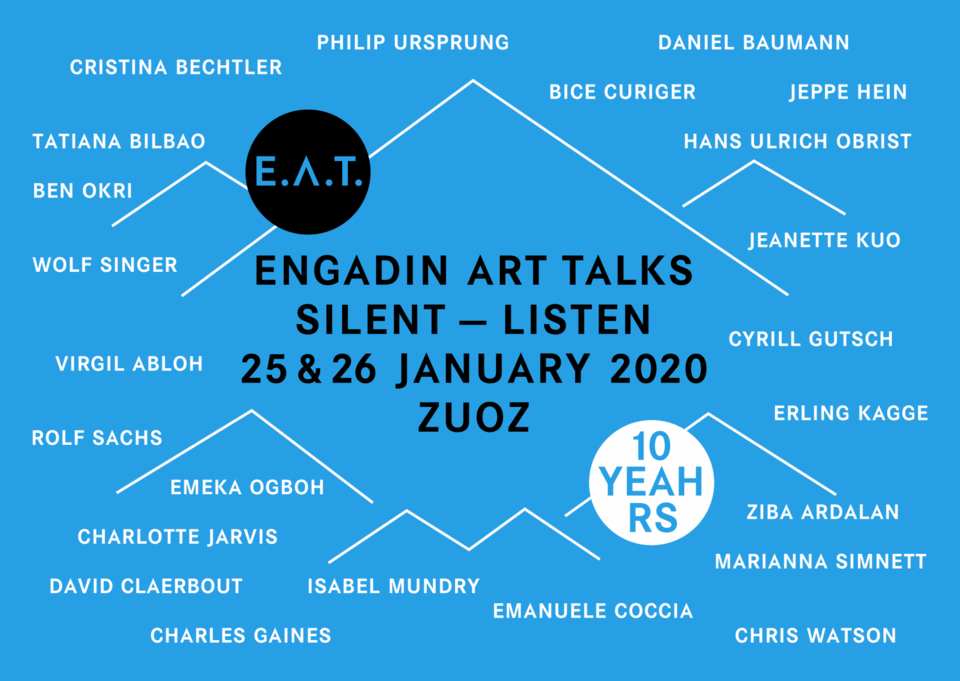 The 2020 programme is curated by Daniel Baumann (Director Kunsthalle Zürich), Bice Curiger (Director Foundation Van Gogh Arles), Hans Ulrich Obrist (Artistic Director, Serpentine Galleries London) and Philip Unsprung (Dean of Architecture at ETH Zürich).